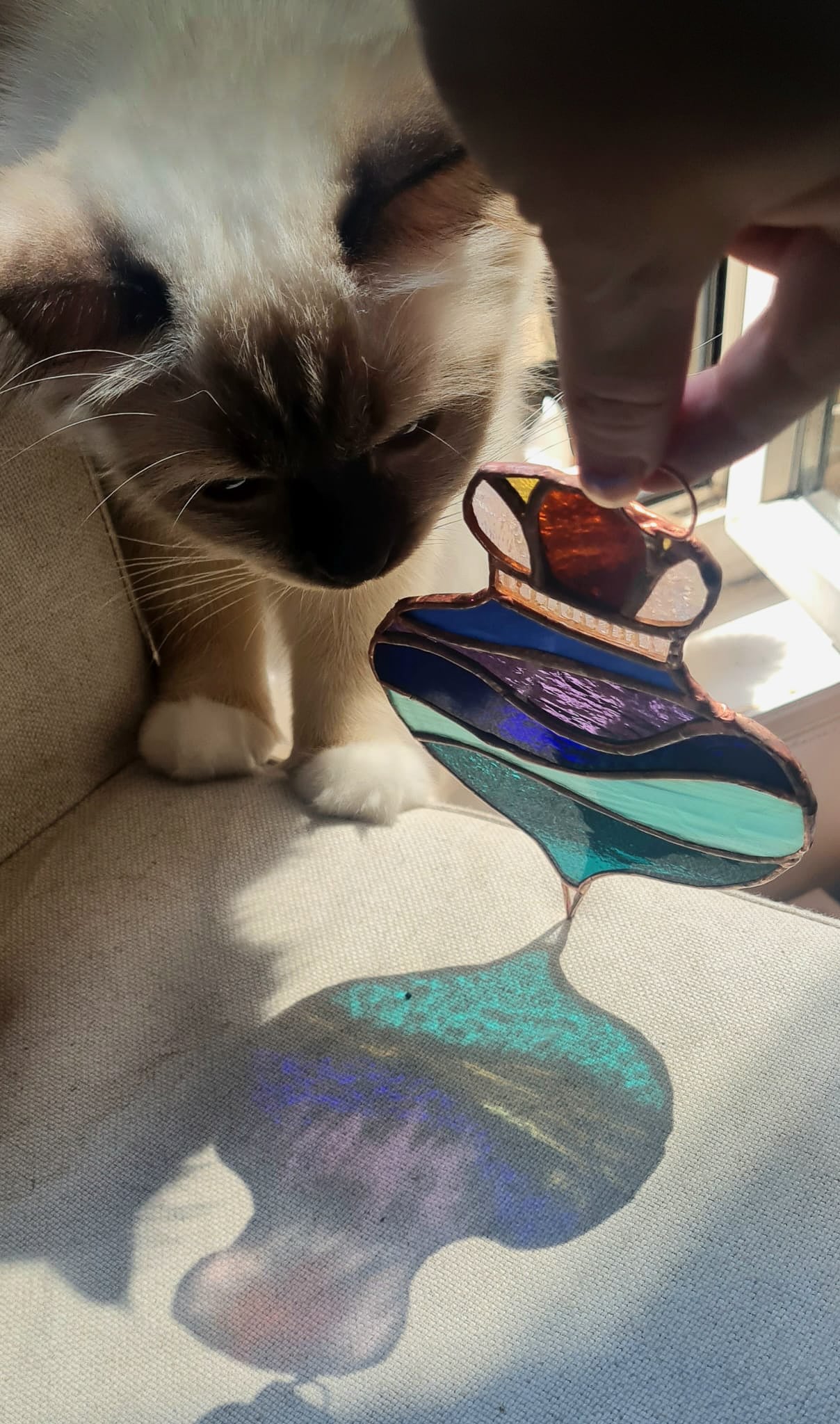 Formée par une maîtresse verrier de la région parisienne ainsi qu’auprès des ateliers de Paris et lors de stages en France, Juliette Coirier obtient son CAP arts et techniques du verre pour vitrailliste et ouvre son propre atelier du verre à la fin de l’année 2022. Riche de ses aventures et tranches de vie à l’étranger, notamment dans les pays du Nord dont l’Islande, elle nomme son atelier Ljós, qui signifie lumière en islandais. Elle s’intéresse également à divers courants et techniques artistiques et architecturaux comme l’art déco ou l’aquarelle qu’elle retranscrit, à sa façon, dans les pièces qu’elle propose. Elle conçoit et réalise artisanalement des vitraux ainsi que des objets verriers de type suspensions, miroirs, bijoux ou encore suncatchers, parfois agrémentés de petits trésors récoltés sur les chemins.